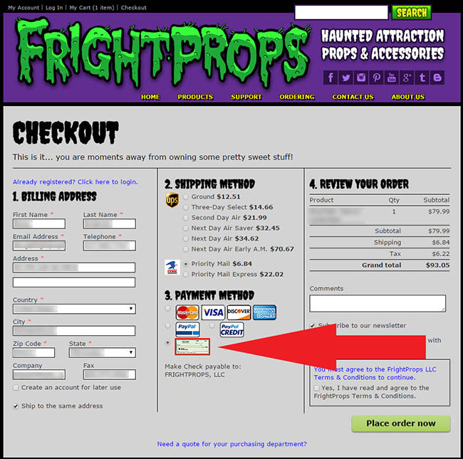 If you would like to pay by bank wire (also referred to as "T/T") you can place the order by selecting the "Check" payment method. Here is where to locate the "Check" payment method on the final checkout page: