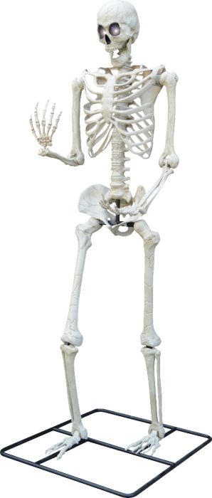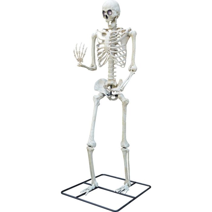 A massive skeleton that towers over 10 feet tall! Includes posable arms and glowing lightup white LED eyes.