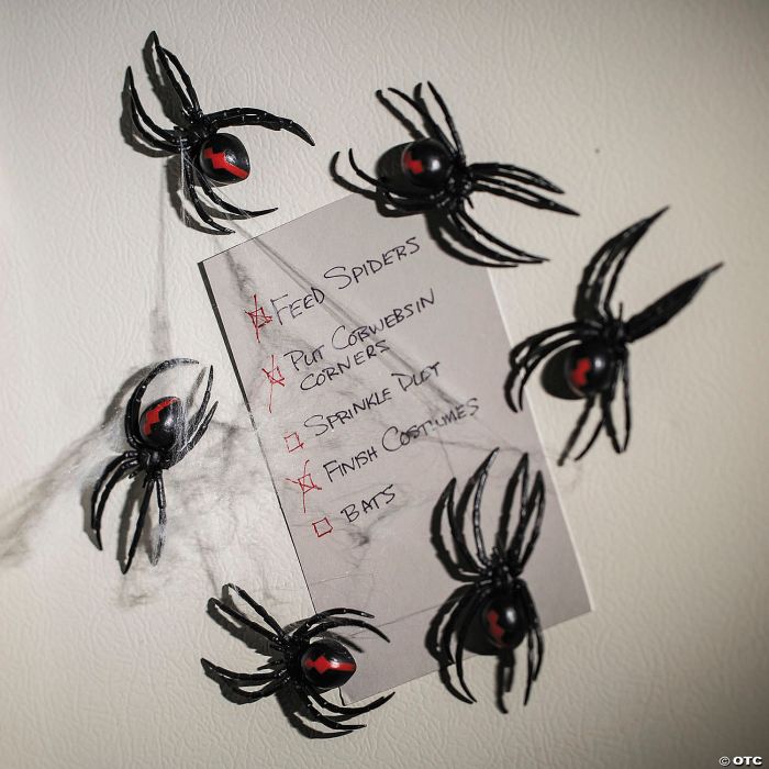 Enhance Halloween displays for parties or events with this set of magnetic black widow spiders.
