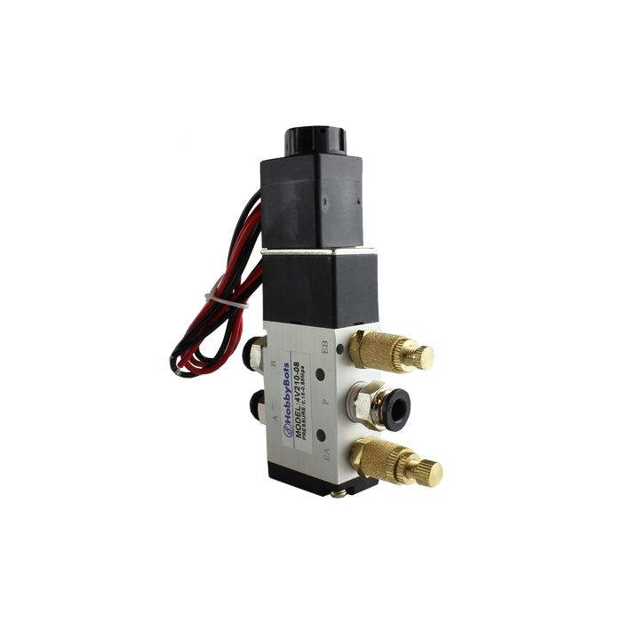 A 5-way valve is simply a 4-way with two separate exhausts. This helps if you want to control speed of a cylinder in both directions by limiting the exhaust individually. Just use these like you would a 4-way. Port 1 is in, 2 & 3 are out, and 4 & 5 are exhaust. Comes with flying leads (wires) for electrical hookup. In and Out ports are threaded female 1/4". The two exhaust ports are female 1/8"