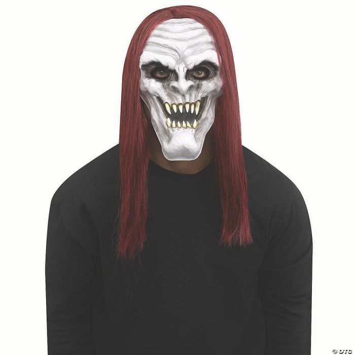 Perfect accessory to create a scary costume with just a mask and a dark hooded robe! Our Grey Demon Vampire Mask features a toothy smile and attached rusty-colored red hair. With your robe, or dark clothing and a dark cape, you will make a spine-tingling appearance! One size fits most adults.