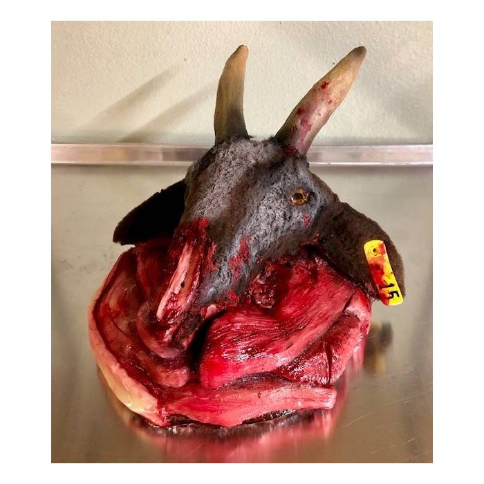 Highly detailed Goat Head & Meat cuts prop is thick latex skinned and poly foam filled for years of use.