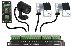 The FlexMax 2 can be purchased in 4, 8, or 16 output models. All outputs are solid-state so they can control 12 or 24VDC loads without wear and tear. To control high voltage or current loads a relay must be used.
