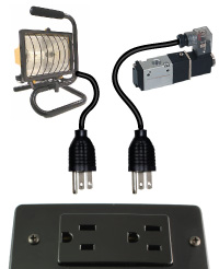 The PicoBoo AC has two 10 amp relays brought out to two standard AC outlets. If you want to leave a light on and deactivate it when the scene begins, you can easily set each of the outputs to either a "normally on" or "normally off" position. As the PicoBoo AC is fused at 10 amps, the total current consumed by both outlets together has to remain below 10 amps.