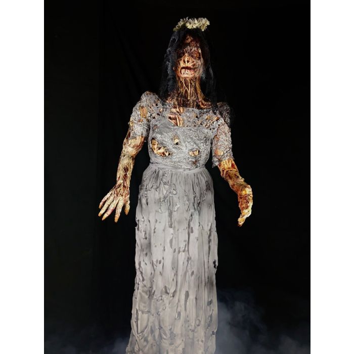 Our Burned Widow is made out of foam, hand painted and dressed in a hand distressed dress and veil.