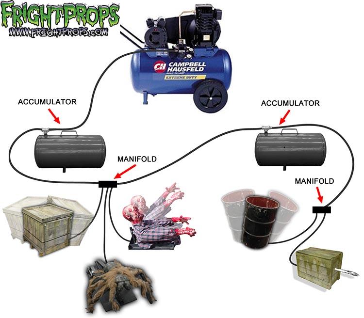 Air Accumulators supply a reservoir of air. These are optional but if you are running a lot of props, especially at distances away from each other, then they help to supply air when the props need it.