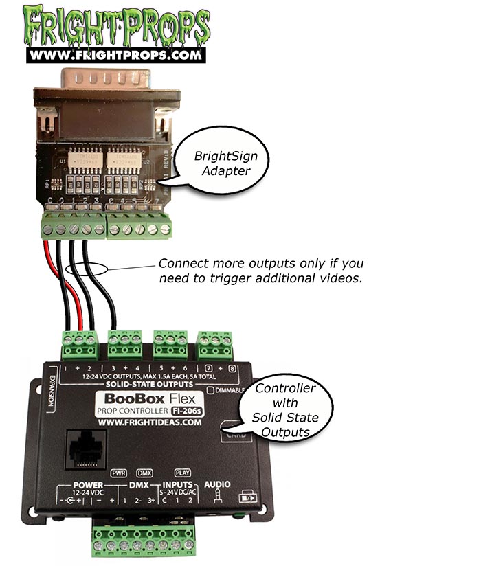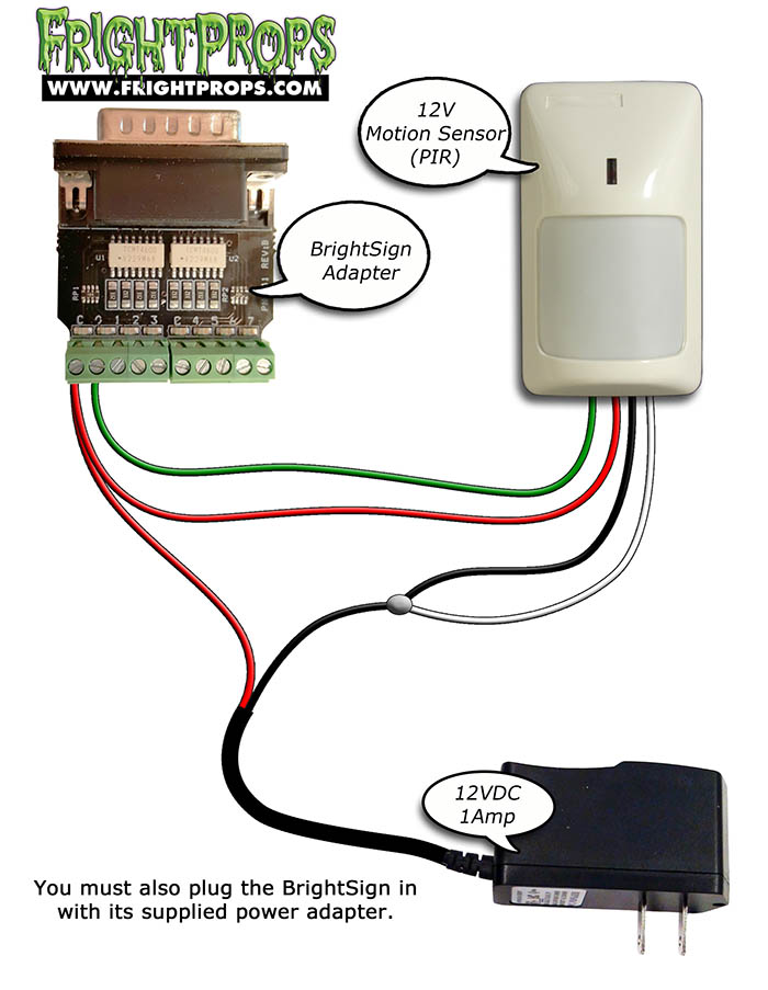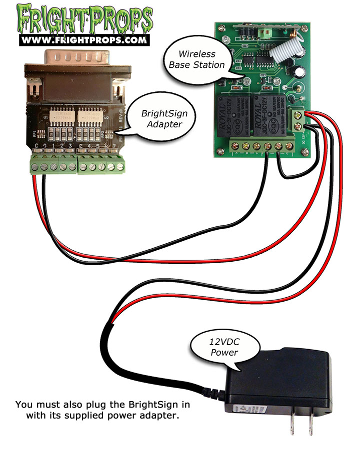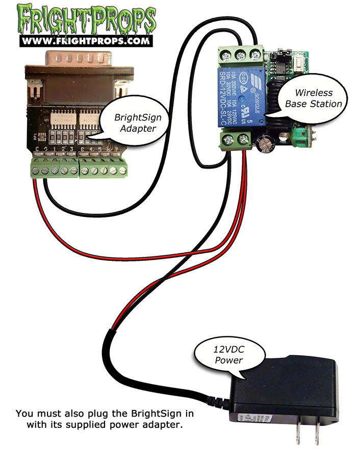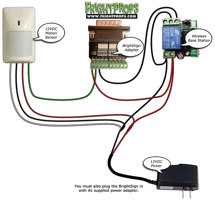 Activating the BrightSign LS422 Digital Video Player from a trigger (such as motion sensor) or controller requires the optional Input Adapter. The diagrams on this page illustrate how to wire into that adapter.