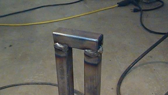 Cut two 14inch segments out of your 1/2inch steel tubing, and two 6inch segments. Take the two 14inch segments and one 6inch segment and weld them into a U-shape as seen bellow.