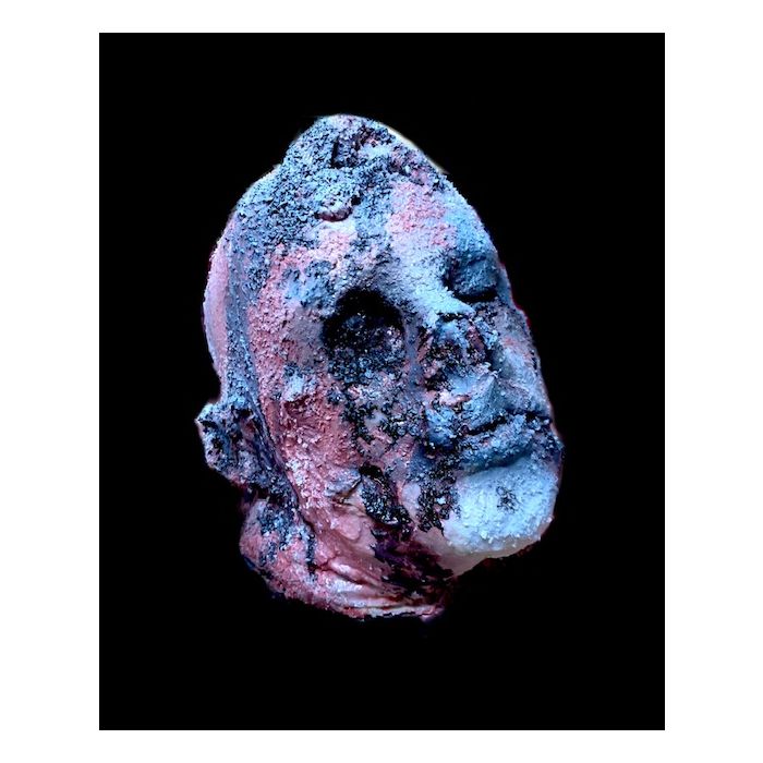Frozen decayed head just like what you would find in a serial killer's freezer!