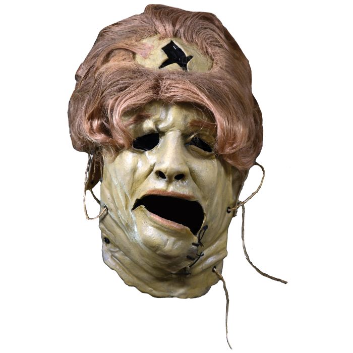 Sculpted by Connor Deless, this mask is based on promo backlot images and door scene of Leatherface in the 1974 Horror Classic, The Texas Chainsaw Massacre. Every detail of Leatherface is captured in this amazing full over-the-head latex mask. Officially licensed Texas Chainsaw Massacre - Leatherface 1974 Grandma Mask. (br)Texas Chainsaw Massacre © 2017 Radar Licensing. All Rights Reserved.