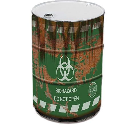 This green biohazard drum cover is printed on 13oz banner material which is 100 % weatherproof. Just wrap the cover around YOUR 55 gal drum. Drum covers come with VELCRO Sewn in place for ease of attachment. **Roll it up at the end of your season and reuse next year!