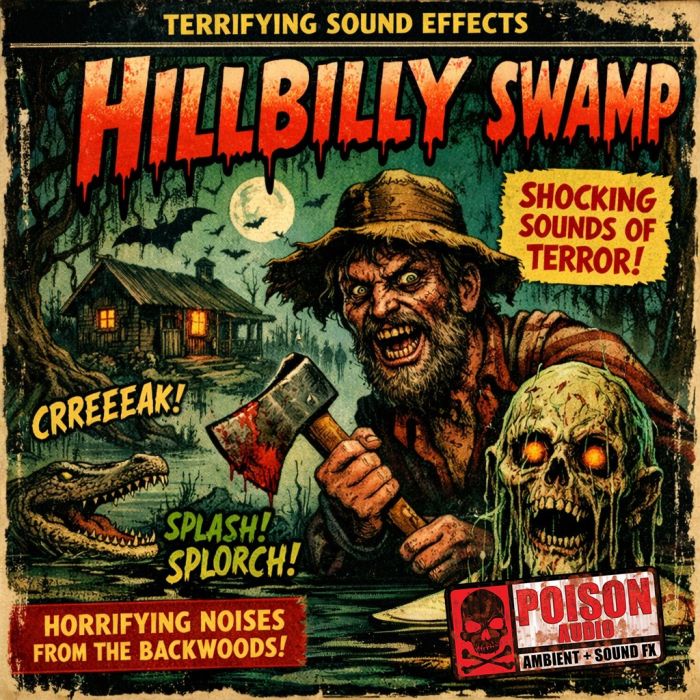 Track 1. Distant Banjo, Swamp, Frogs, Crickets, Snakes, Swamp Water Slither, Distant Pigs Squeal, Distant Creatures and Mosquitoes.