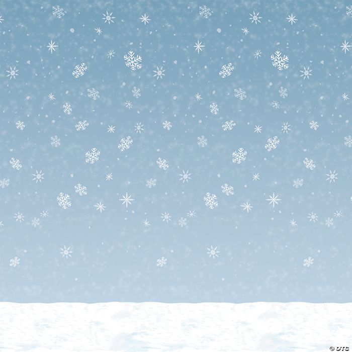 Beistle Winter Sky Backdrop Wall Decoration. Create a winter wonderland! Light blue sky with white snowy ground and snow flakes coming down in the air. Measures 4 feet by 30 feet.