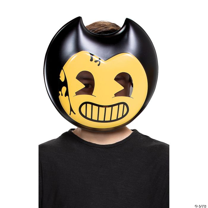Fans of the Bendy Dark Revival game will love this creepy Bendy Face Mask! Our Child Bendy Face Mask has the familiar yellowed aged appearance along with a distressed damaged look. One size fits most children. Made of lightweight plastic. Wipe clean with damp cloth. © Joey Drew Studios, Inc.