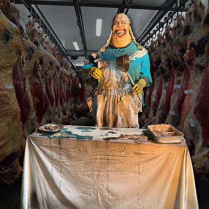 this prop is gross and scary it made me gross when I saw the plates of food on the table. I think it would be good for any haunt or haunted house
