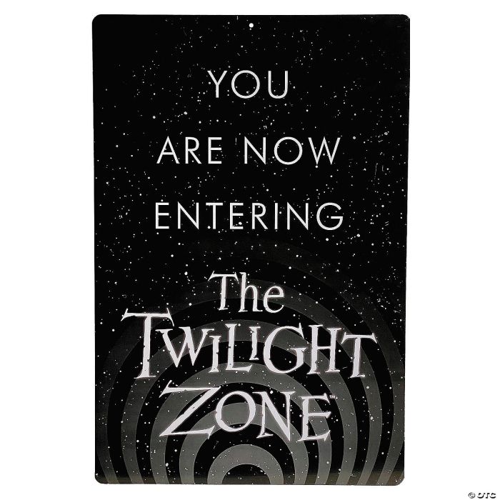 Trick or Treat Studios is proud to present the officially licensed, Twilight Zone - You Are Now Entering the Twilight Zone - Metal Sign. This beautiful sign is made from solid metal with a bright, solid printed design, and has a small hole in the center for easy hanging. Order your You Are Entering the Twilight Zone - Metal Sign now and lead your neighbors to a new reality this Halloween! Designed by Sam Furst. The Twilight Zone TM amp; © 2017 CBS Television. All rights reserved. 18" x 12".