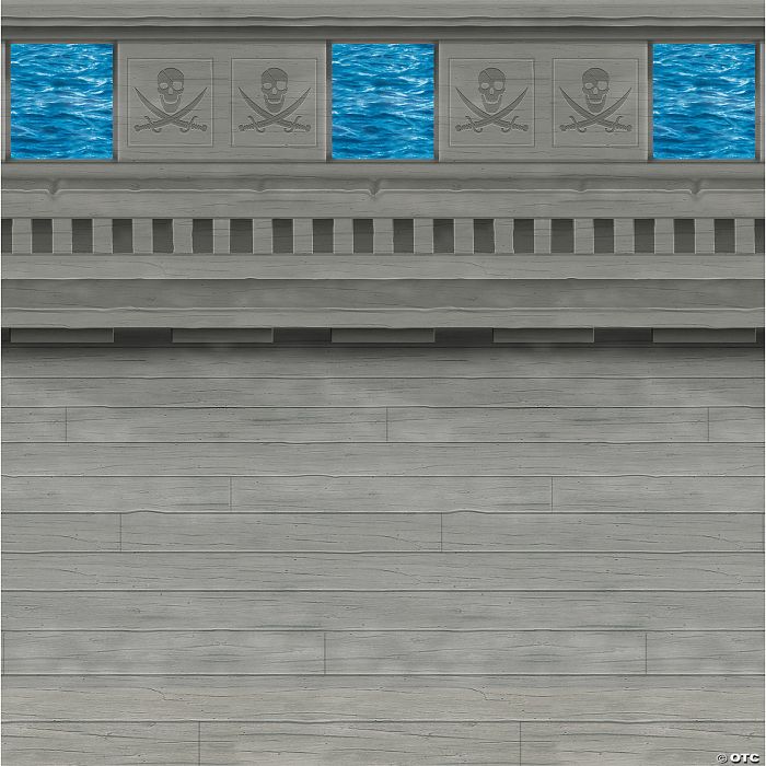 A great backdrop for your pirate party and maybe even your luau! Great for staging photos as well! Looks like you ft.re on the deck of a pirate ship with a view of the ocean. Measure 4 feet x 30 feet. Can be attached to the wall with tape. (C) 2018 T