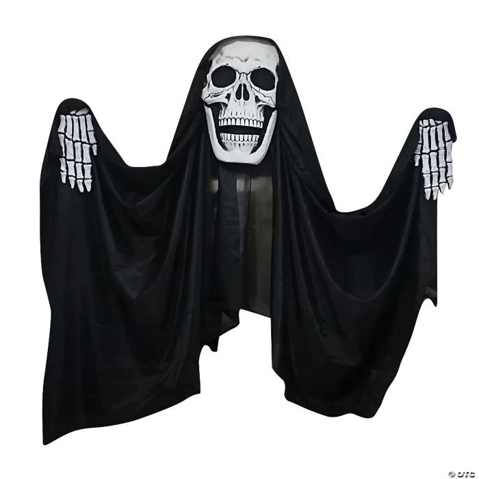 Haunting Reaper Curtain decoration is cloaked in a lengthy black robe that drapes down off its lifeless body! Place it above windows to use as a curtain or hang above doors and entryways to section off rooms. The robe drapes over 9 feet tall and is suitable for large as well as small spaces. Try it out for yourself and transform your space with an undead nightmare!