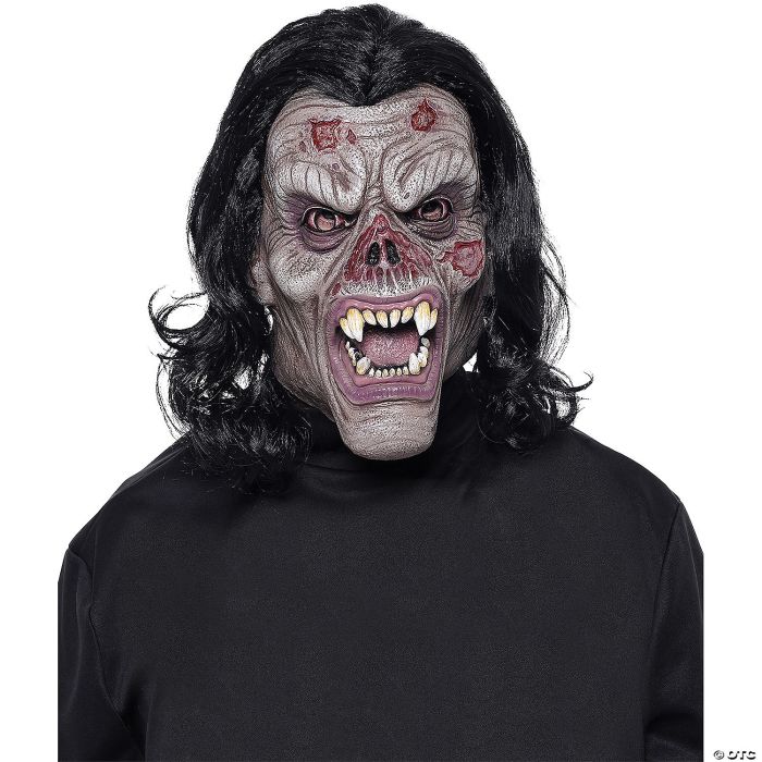 Bare your fangs with this Rotting Vampire mask. Includes detailed decaying looking sculpt, black tendrils of hair, and fierce wide eyes with pupils cut out for better vision. This over-the-head latex mask is perfect for scaring friends or family for any type of Halloween haunt! Great on its own, and even creepier paired with a costume! One size fits most adults. Packaging: Header Card