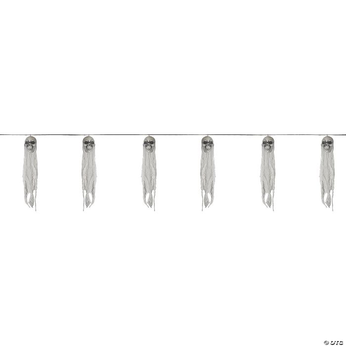 Skull and Ghost Garland 60 In.Great way to decorate for your Halloween Party! Plastic skulls draped with cheesecloth styling, attached to a 60" long cord. Each skull head with draping measures 18" tall.