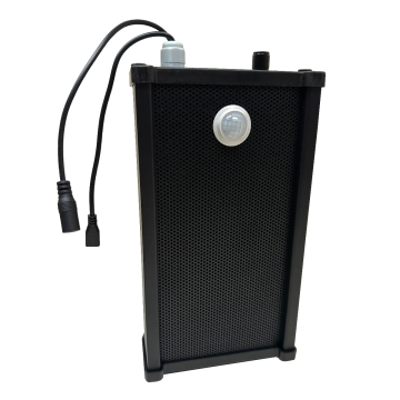 A powerful, 14-Watt speaker with a built-in motion sensor and MP3 player! Simply load any sound, or series of sounds, you want onto an SD card, put the SD card into the speaker and turn it on. You can also use a USB memory stick to upload your files into the internal memory.