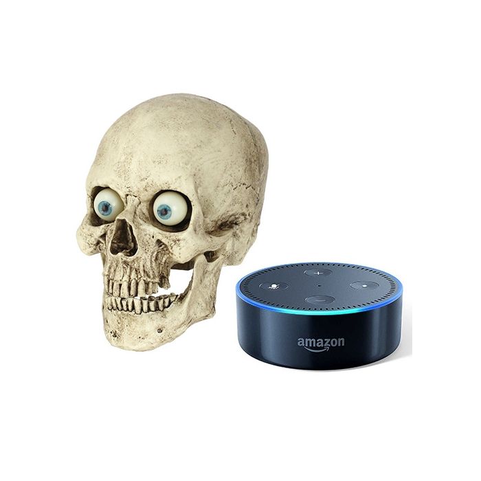This kit includes a talking skull with head-turn movement and all the cables required to connect it to your Amazon Alexa! No programming is required! Just plug the skull into your Alexa and you are set to go! External speakers are required for this kit even if you Alexa unit has a speaker. You can use the speakers that are included in the kit, or use any powered speakers (like the kind you would use for your PC).