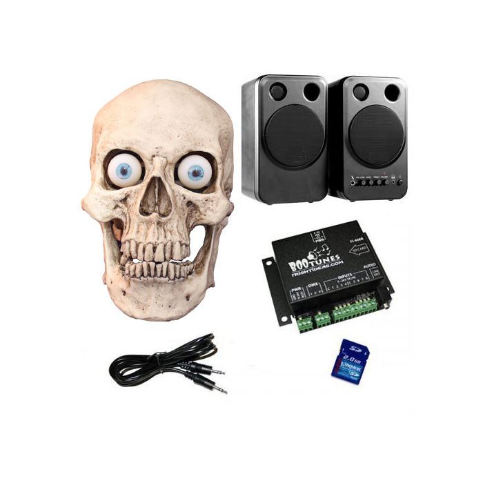 Everything you need to get our incredible Talking Skull with Head Turn up and running!