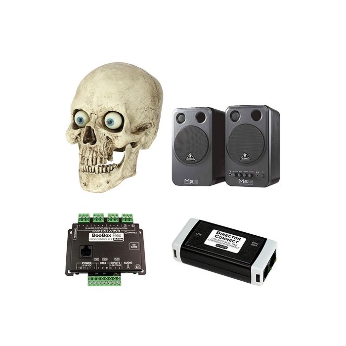 This kit contains everything you need to take full control of our Three Axis Skull! This kit is recommended for users who want to go beyond the Auto-Talk function of the Three Axis Skull and program specific movements via DMX.
